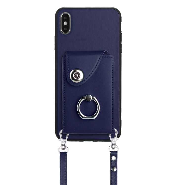 Funda para Teléfono iPhone X / Xs con Soporte para Anillo y Bolsa para Tarjeta con Cordón Largo (Azul)