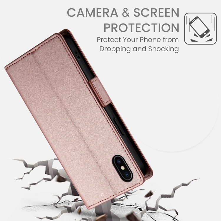 Funda para Teléfono iPhone X / Xs Cuero Esmerilado Magnético con Hebilla Lateral (Oro Rosa)