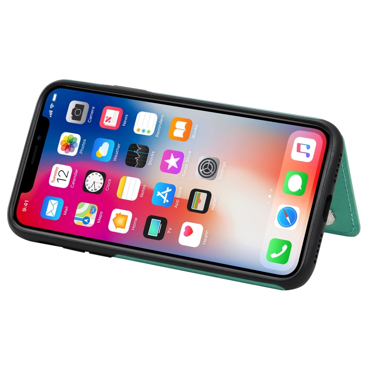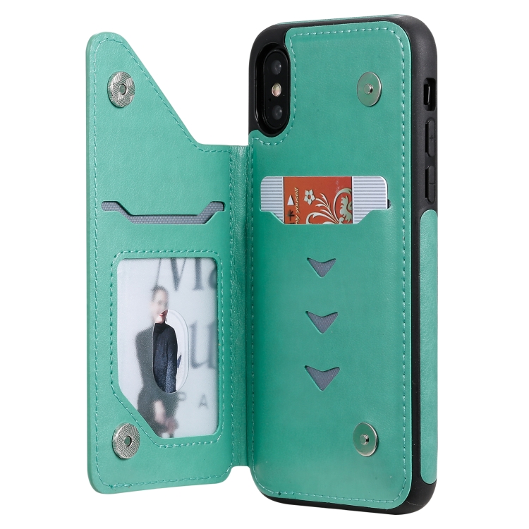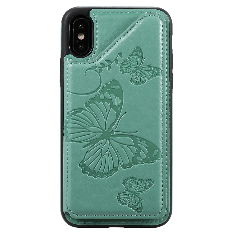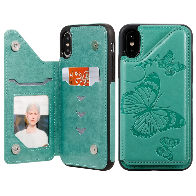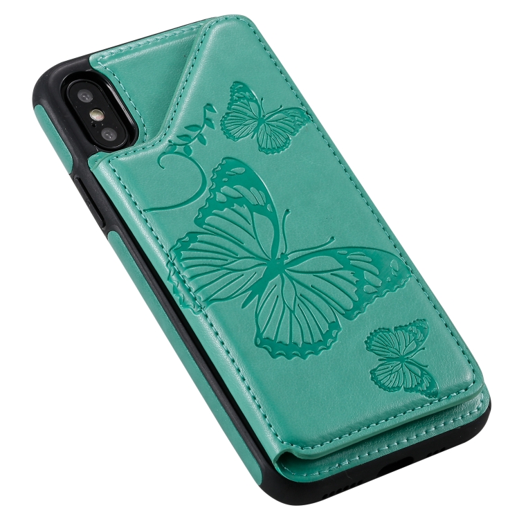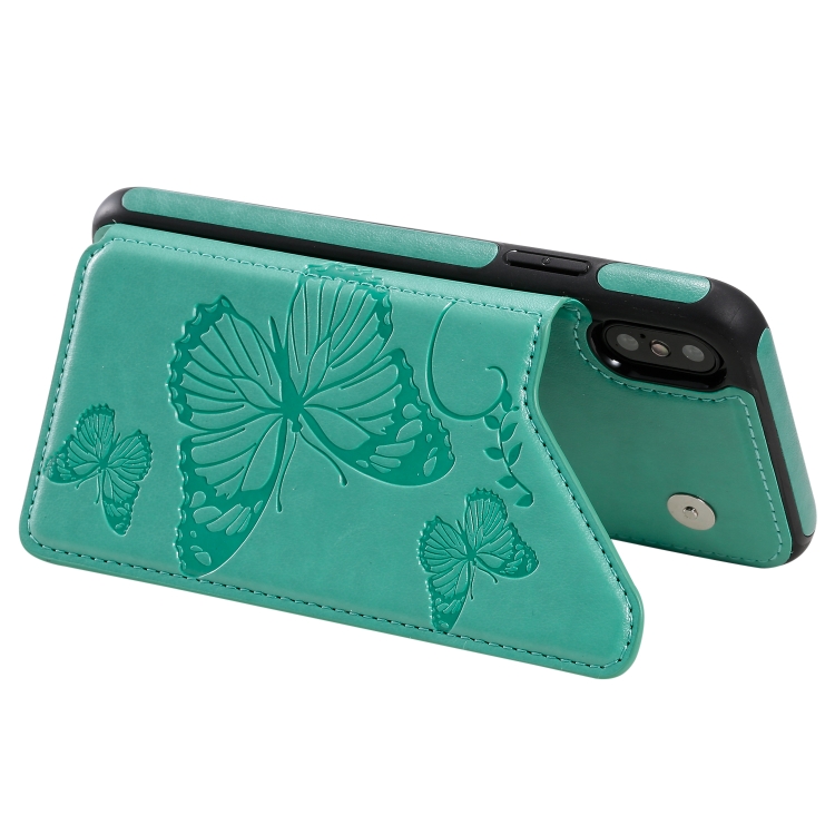 Funda Protectora iPhone X y Xs Patrón Mariposas Soporte Ranuras Tarjetas Marco Fotos (Verde)