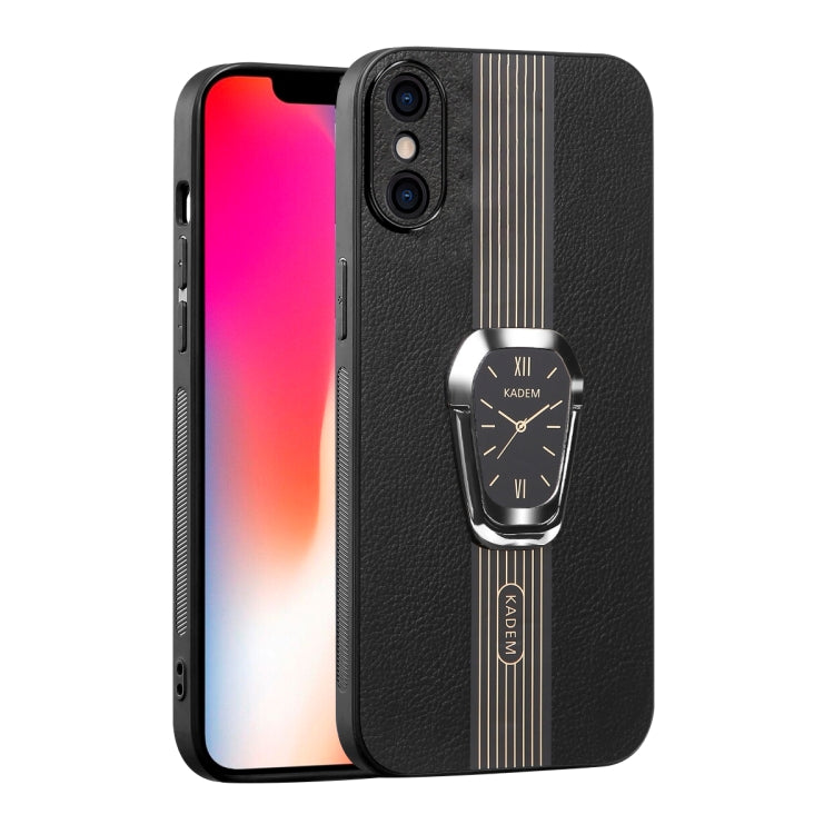 Funda Trasera iPhone X / Xs Cuero Litchi Magnética con Soporte (Negro)