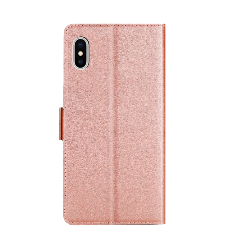 Funda para iPhone X Xs Hebilla Lateral Voltaje Ultrafino Pu TPU Cuero Tapa Horizontal Soporte Ranura Tarjeta (Oro Rosa)