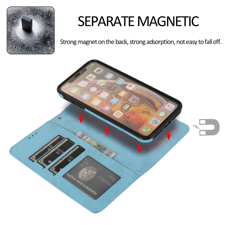 Funda para iPhone X / Xs Klt888-2 Retro 2 en 1 Cuero TPU + PU con Tapa Horizontal Magnética Desmontable Soporte Ranuras Tarjetas Marco Fotos Billetera (Azul Cielo)
