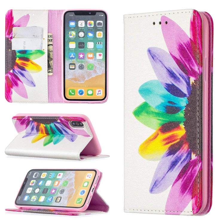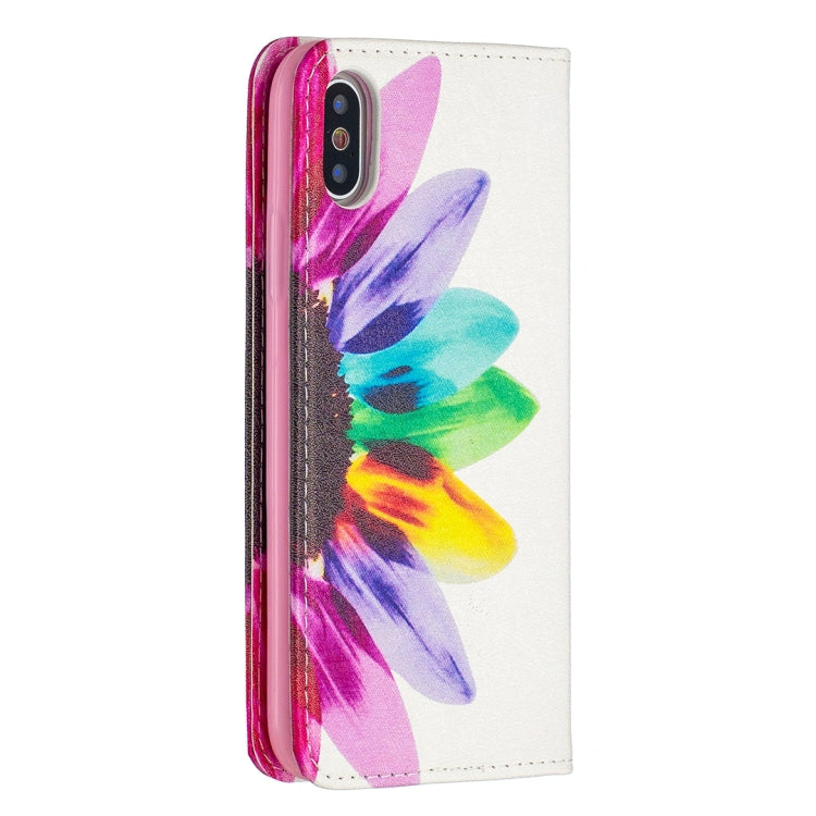 Estuche de Cuero de Pu para iPhone X / Xs con Tapa Magnética Horizontal Soporte Ranuras y Billetera (Flor del Sol)