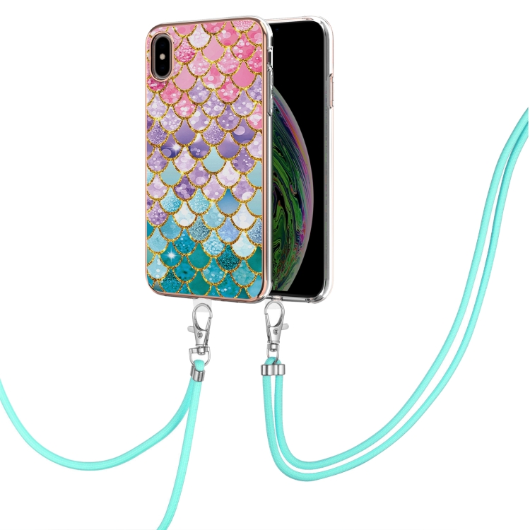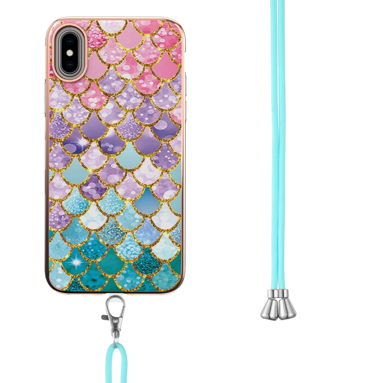 Estuche TPU para iPhone X / Xs Patrón Galvanoplastia Imd a Prueba de Golpes con Cordón para Cuello (Escamas de Colores)
