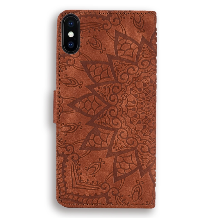 Estuche de Cuero iPhone X Xs Patrón Pantorrilla Diseño Plegable Doble con Billetera Soporte y Ranuras para Tarjetas (Marrón)