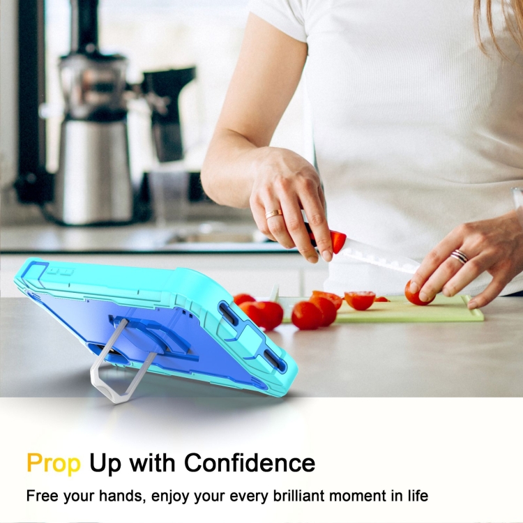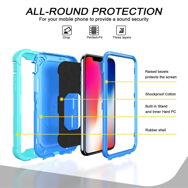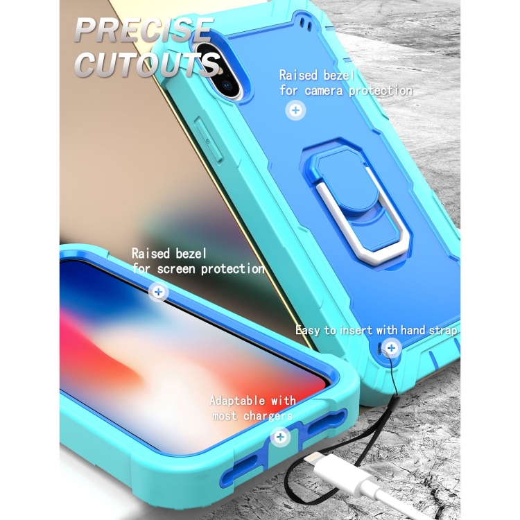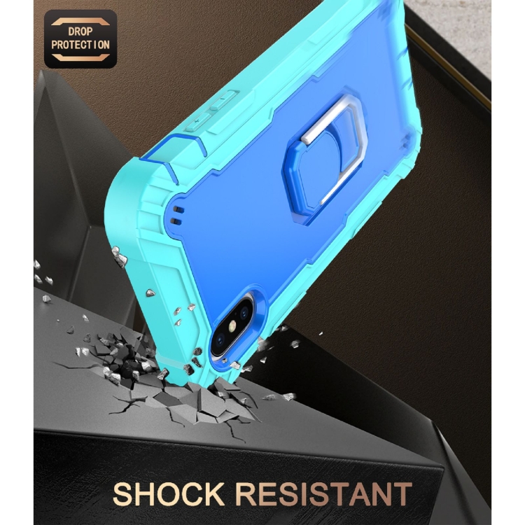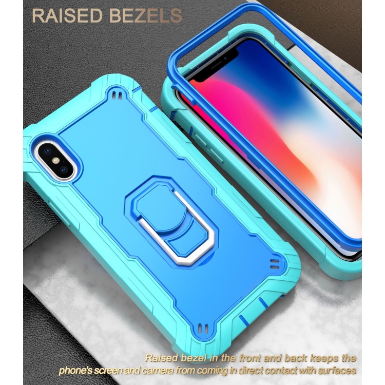Funda Protectora para iPhone X Xs PC 3 Capas Prueba de Golpes Soporte Giratorio (Verde Menta Azul)