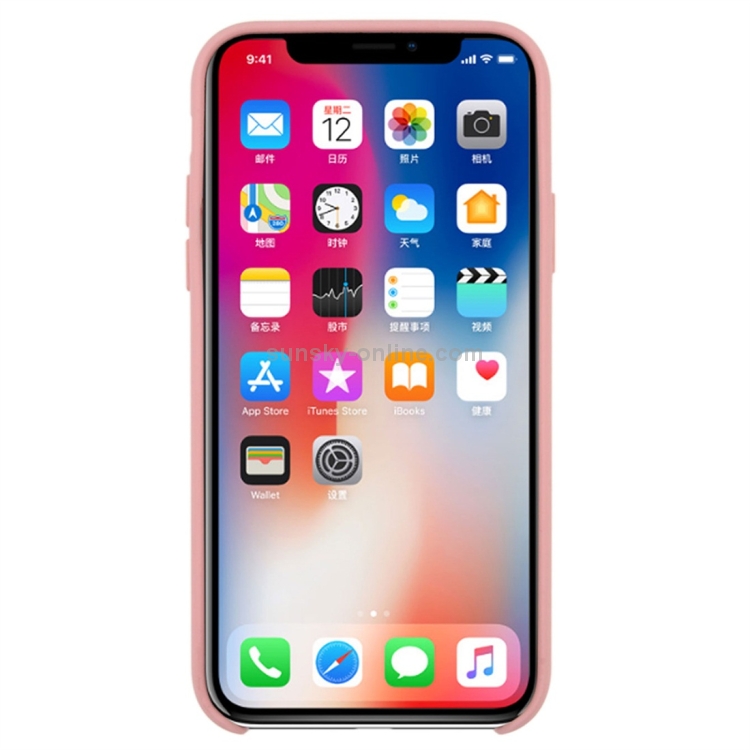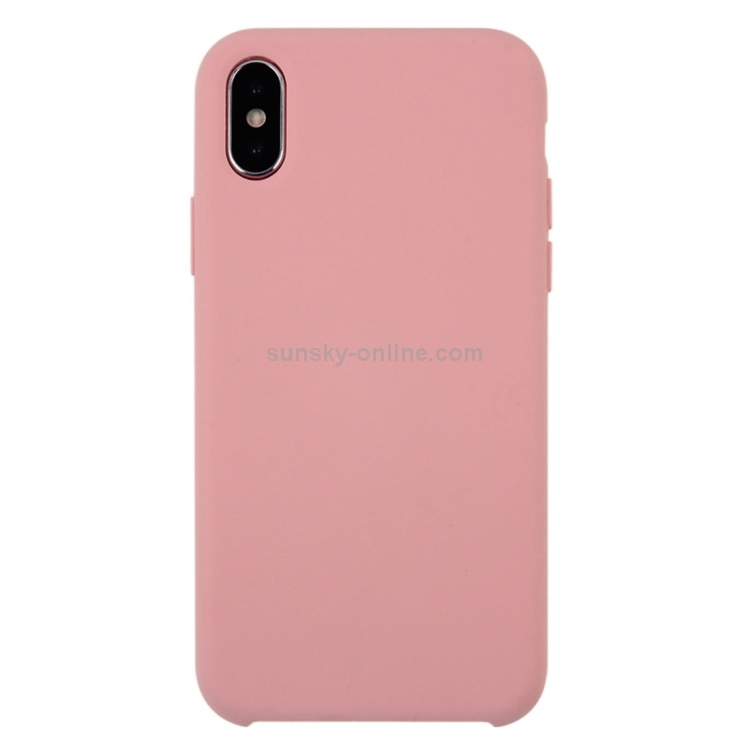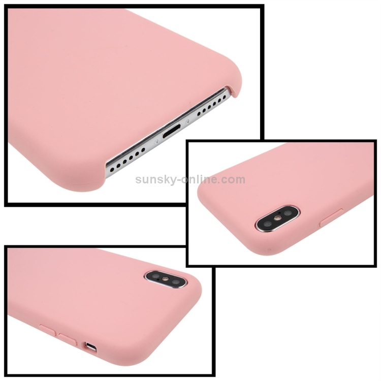 Funda Protectora Trasera para iPhone X Xs Pure Color Liquid Silicone + PC Dropproof (Rosa Claro)