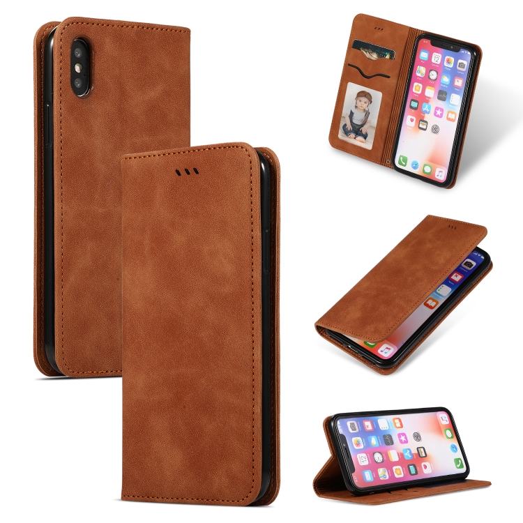 Funda de Cuero para iPhone X Xs Retro Skin Feel Business con Tapa Horizontal Magnética (Marrón)