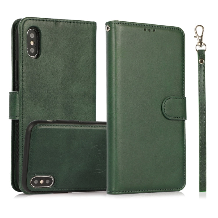 Funda para iPhone X Xs Textura de Becerro 2 en 1 Cubierta Trasera Magnética Desmontable con Tapa Horizontal Soporte Ranuras para Tarjetas Billetera Marco de Fotos (Verde)