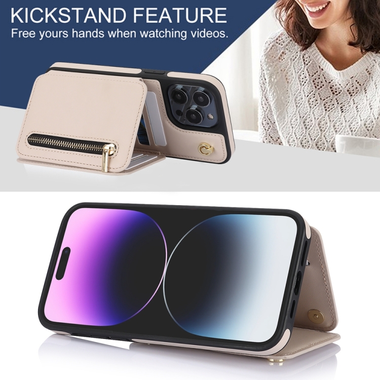 Estuche para Teléfono iPhone X Xs Ym006 Bolsa para Tarjetas Cremallera Sensación de Piel Cordón Doble (Albaricoque)