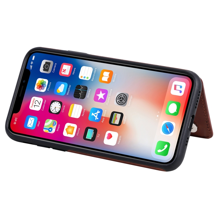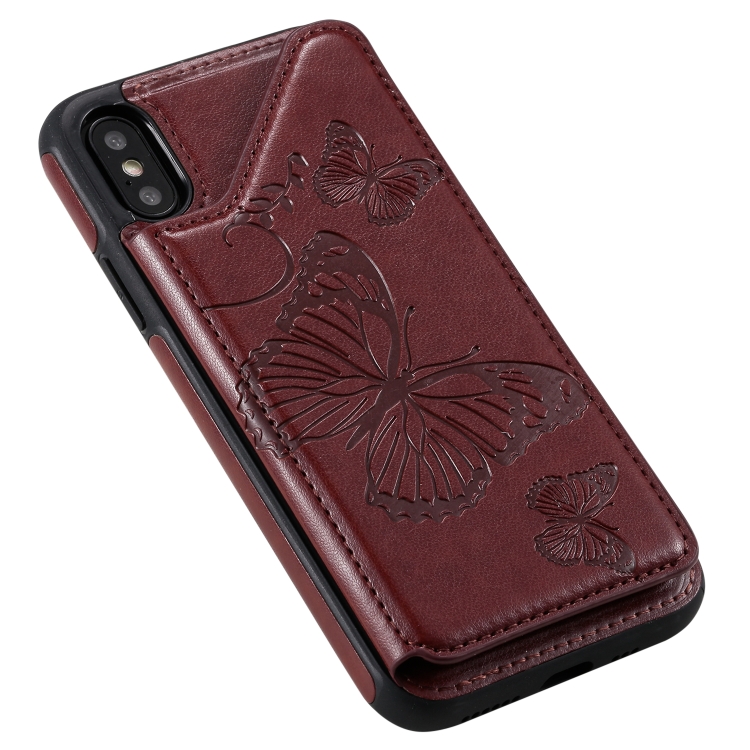Funda Protectora para iPhone X y Xs a Prueba de Golpes con Estampado de Mariposas Soporte Ranuras para Tarjetas Marco de Fotos (Marrón)
