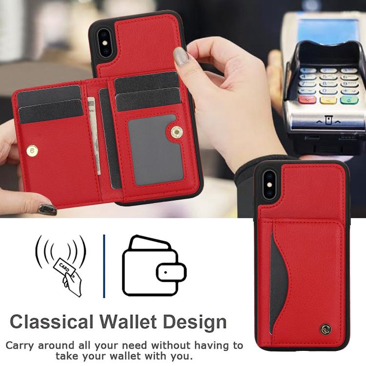 Funda para iPhone Xr Awquer Cuero Tapa Horizontal Tarjetas Soporte (Rojo)
