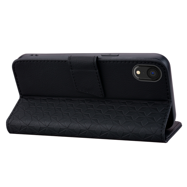 Funda para iPhone Xr Business de Cuero con Hebilla de Diamante y Cordón (Negro)
