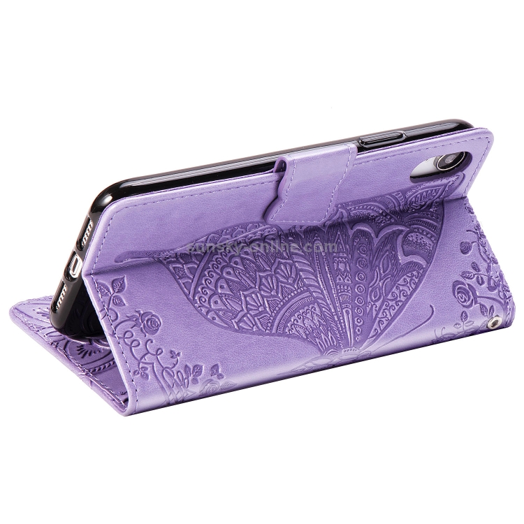 Título optimizado: Estuche de Cuero para iPhone Xr Butterfly Love Flowers con Tapa Horizontal En Relieve Soporte Ranuras y Cordón (Púrpura Claro)