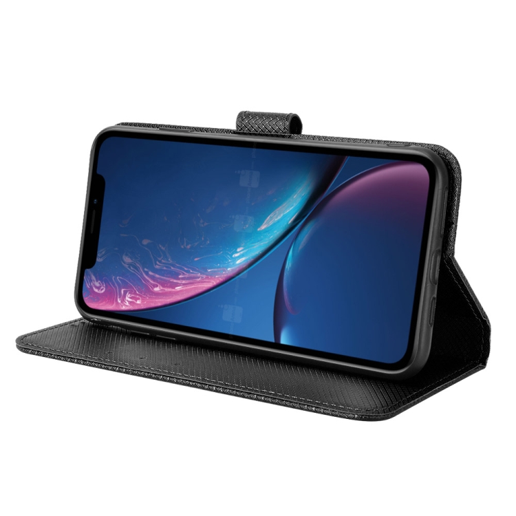 Caja de teléfono iPhone Xr Cuero Textura de Diamante (Negro)