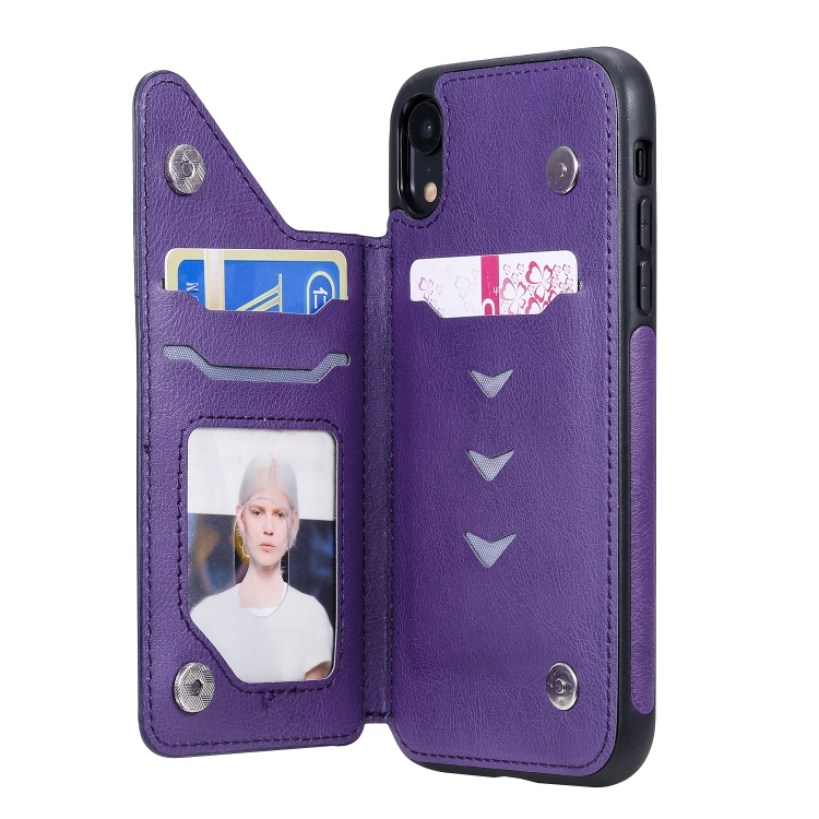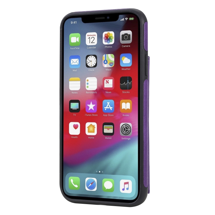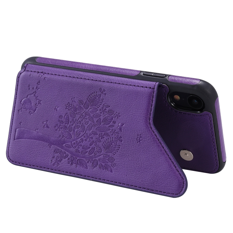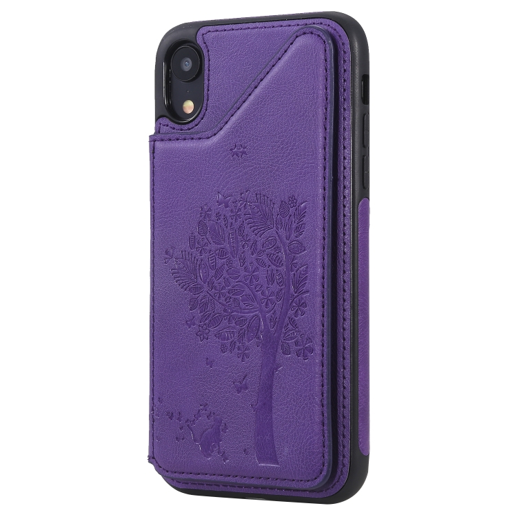 Estuche Protector para iPhone Xr Cat Tree Embossing Pattern a Prueba de Golpes con Ranuras para Tarjetas y Soporte (Púrpura)