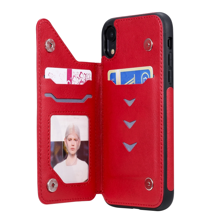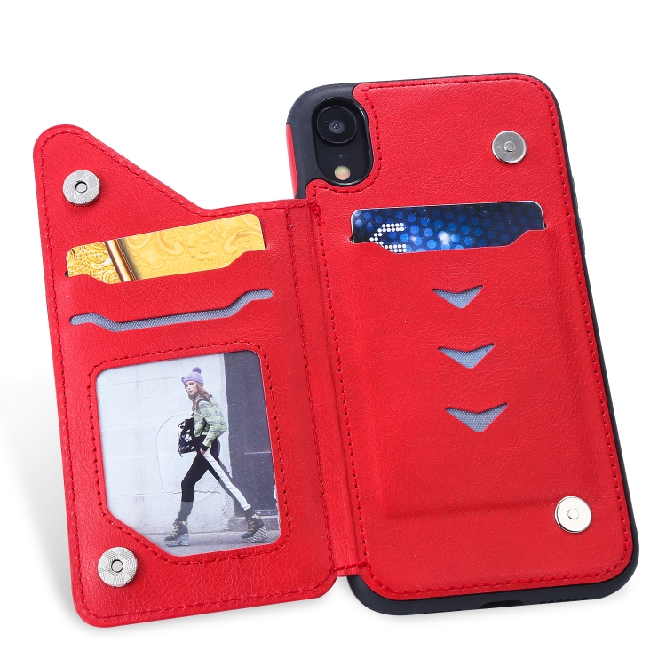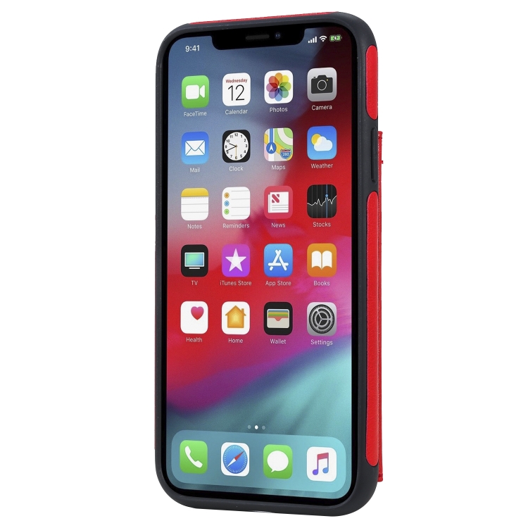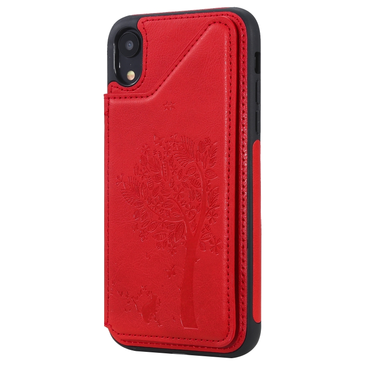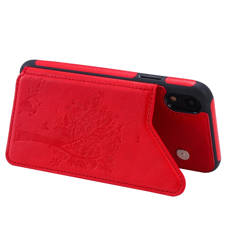 Estuche Protector para iPhone Xr Cat Tree Embossing Pattern con Ranuras para Tarjetas y Soporte (Rojo)