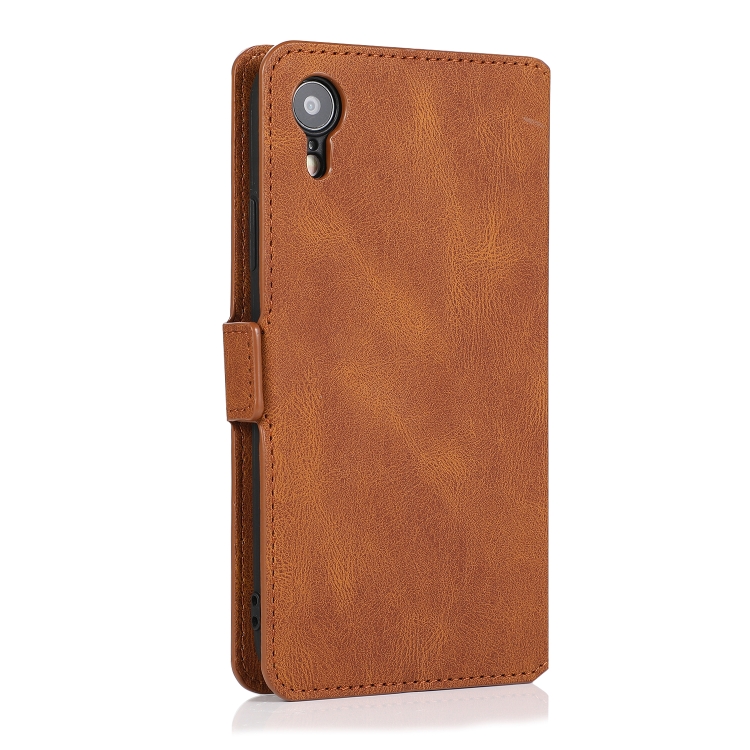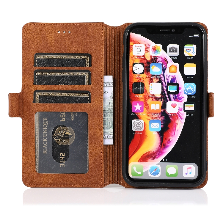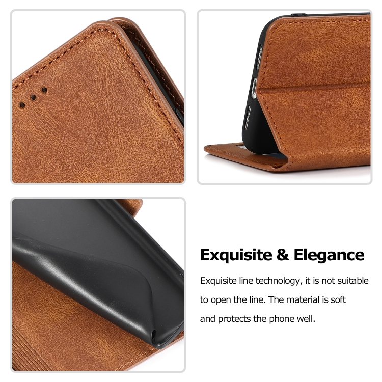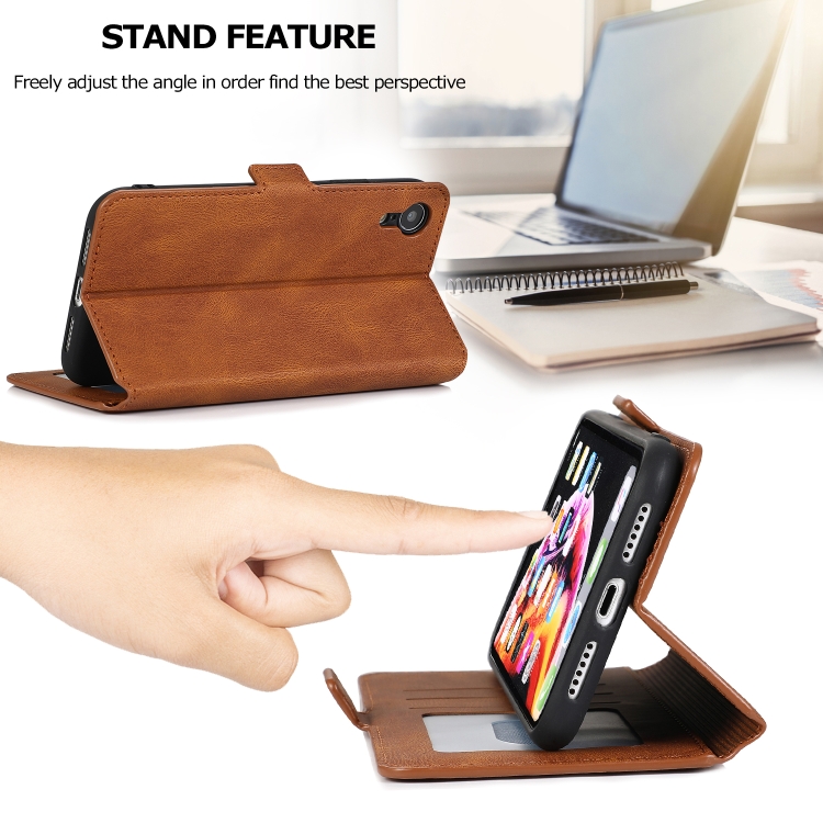 Estuche de Cuero para iPhone Xr Cierre Magnético Tapa Horizontal con Soporte Ranuras para Tarjetas Marco de Fotos Billetera (Marrón)