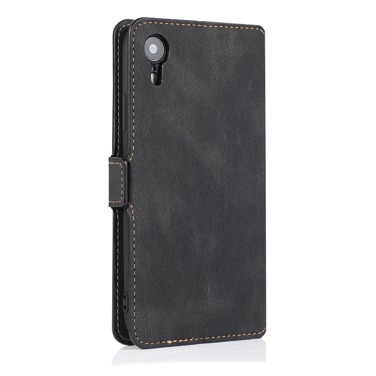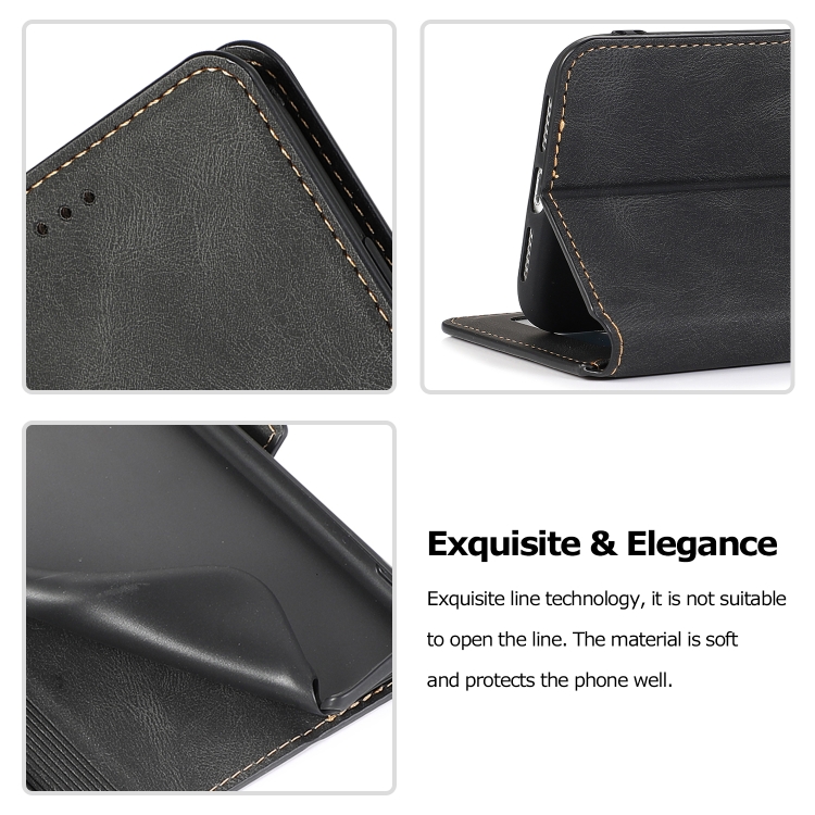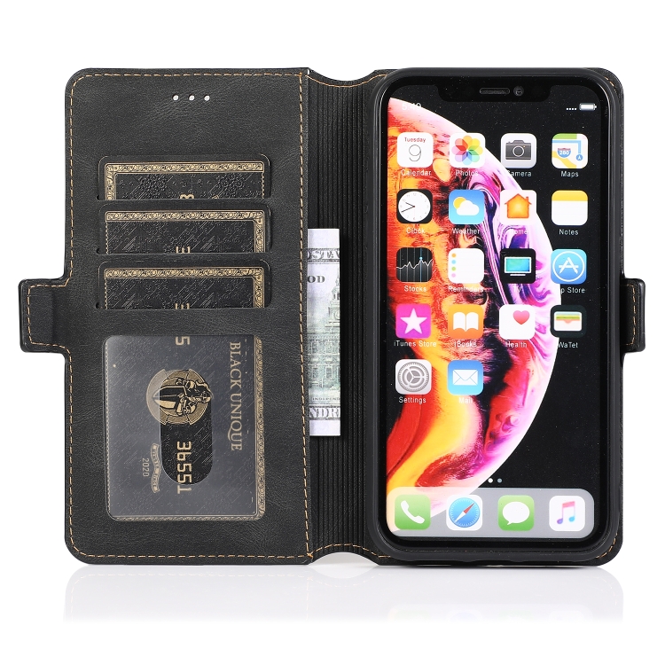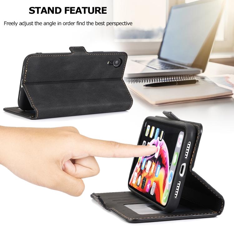Funda para iPhone Xr Cierre Magnético Estuche de Cuero con Tapa Horizontal Soporte Ranuras Tarjetas Marco Fotos Billetera (Negro)
