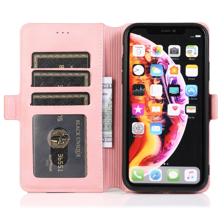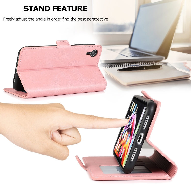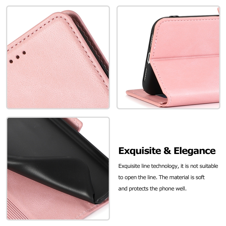 Estuche de Cuero para iPhone Xr Cierre Magnético Retro Tapa Horizontal Soporte Ranuras Tarjetas Marco Fotos Billetera (Oro Rosa)