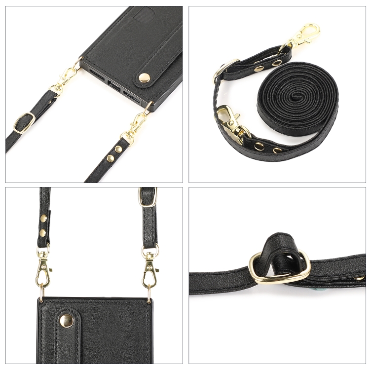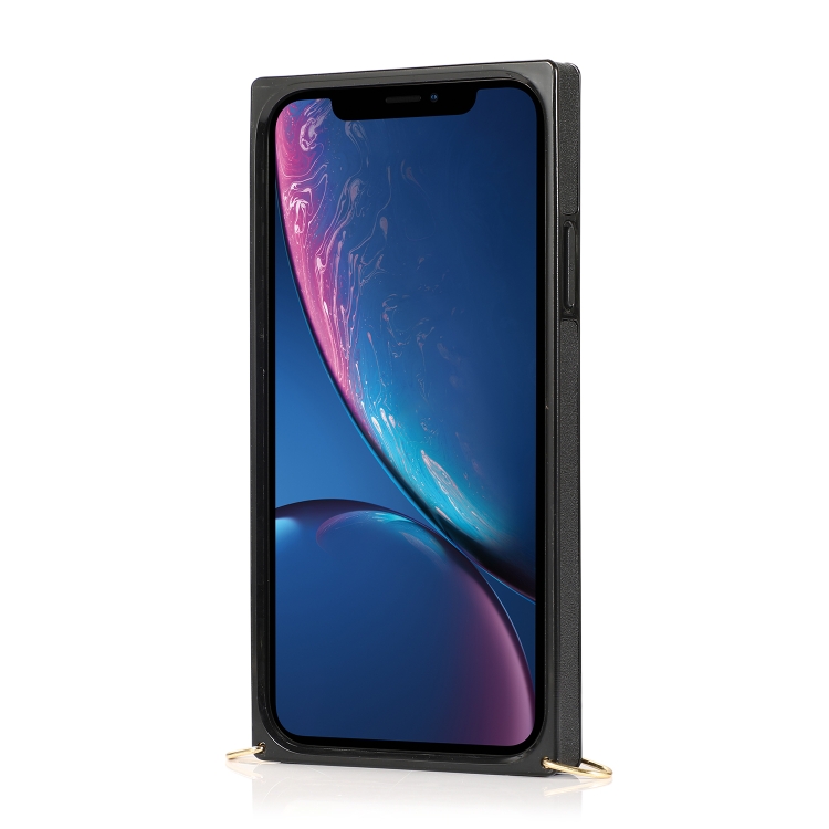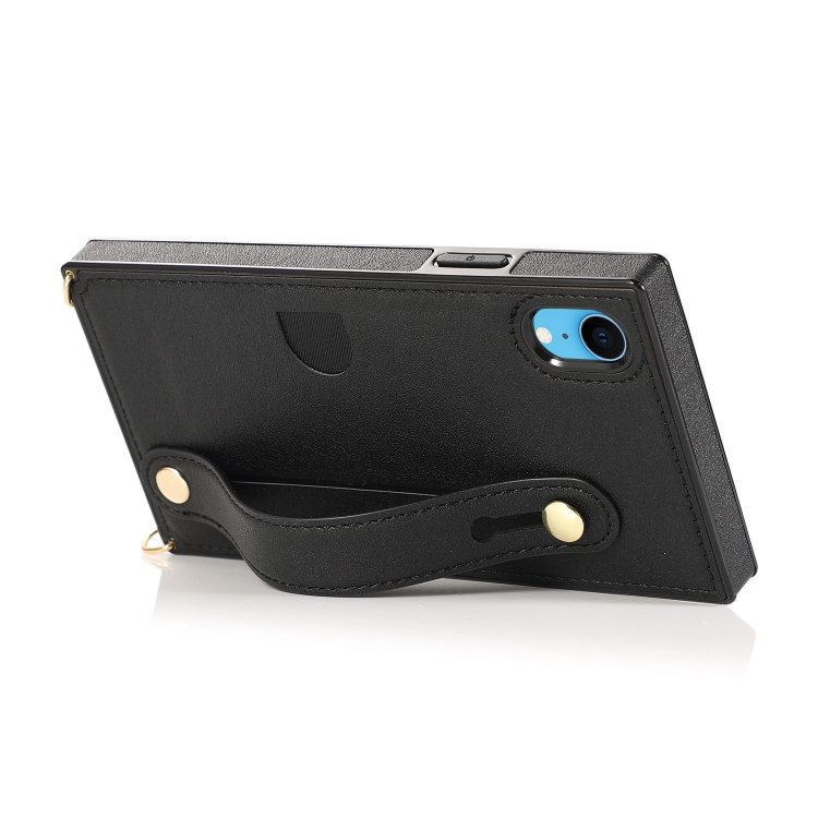 Correa de Muñeca PU + Funda TPU para iPhone Xr a Prueba de Golpes con Cordón Cruzado Soporte y Ranura para Tarjeta (Negro)