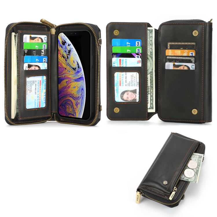 Funda de Cuero Crossbody para iPhone Xr con Billetera y Cremallera Multifuncional (Negro)