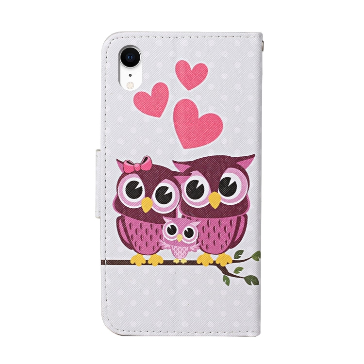 Estuche de Cuero para iPhone Xr con Tapa Horizontal y Patrón de Búhos con Soporte y Ranuras para Tarjetas