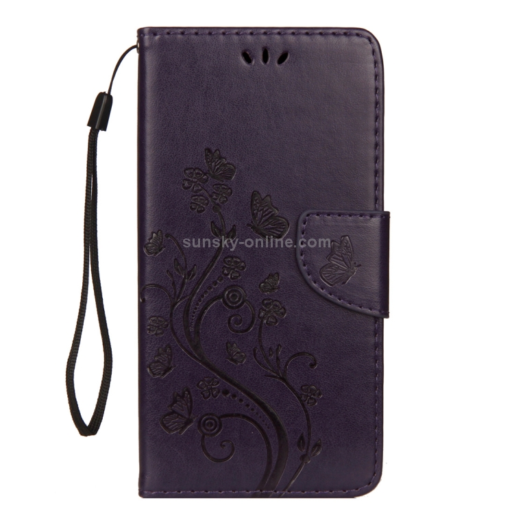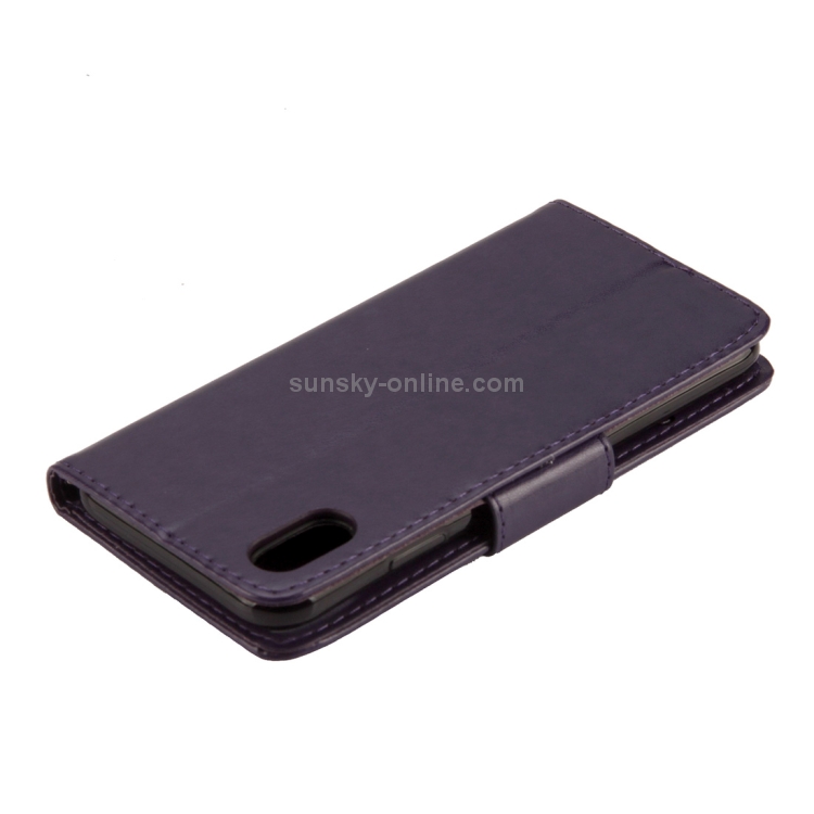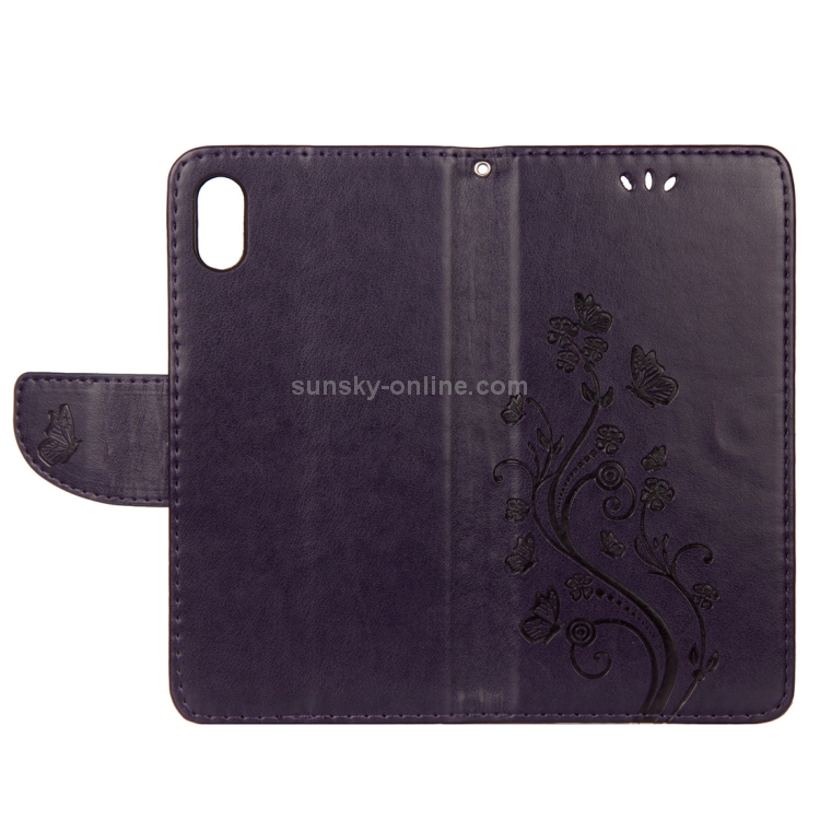 Estuche de Cuero para iPhone Xr con Tapa Horizontal Patrón Mariposa Ranura Tarjeta Soporte Billetera Cordón (Púrpura Oscuro)