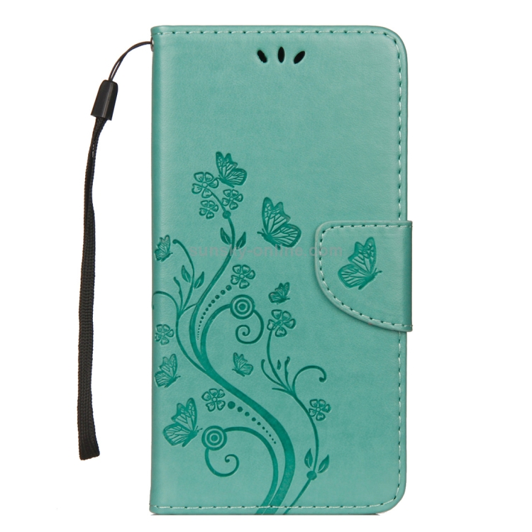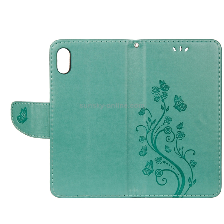 Estuche de Cuero para iPhone Xr con Tapa Horizontal Patrón Mariposa Ranura Tarjeta Soporte Billetera Cordón (Verde)