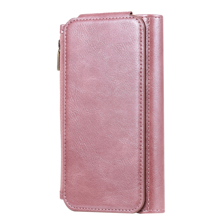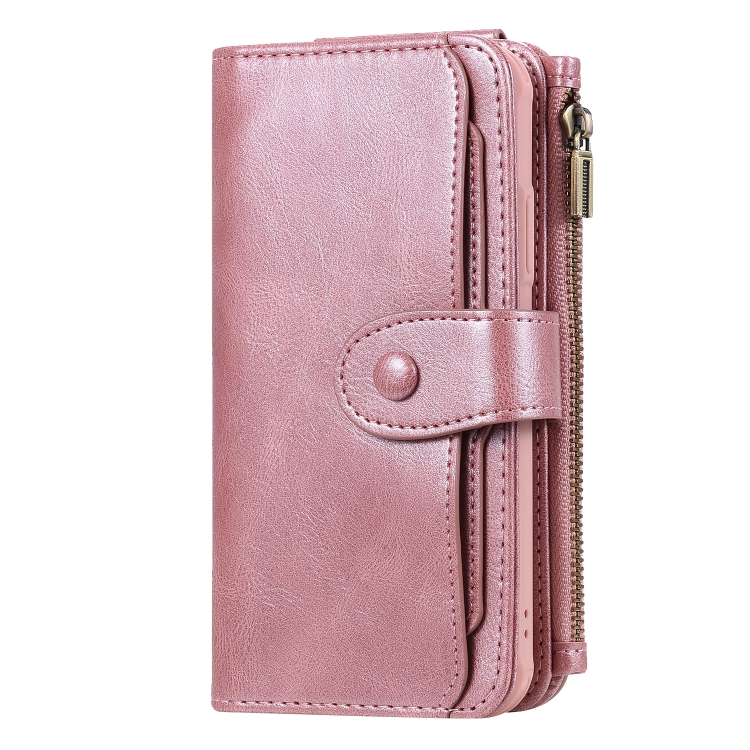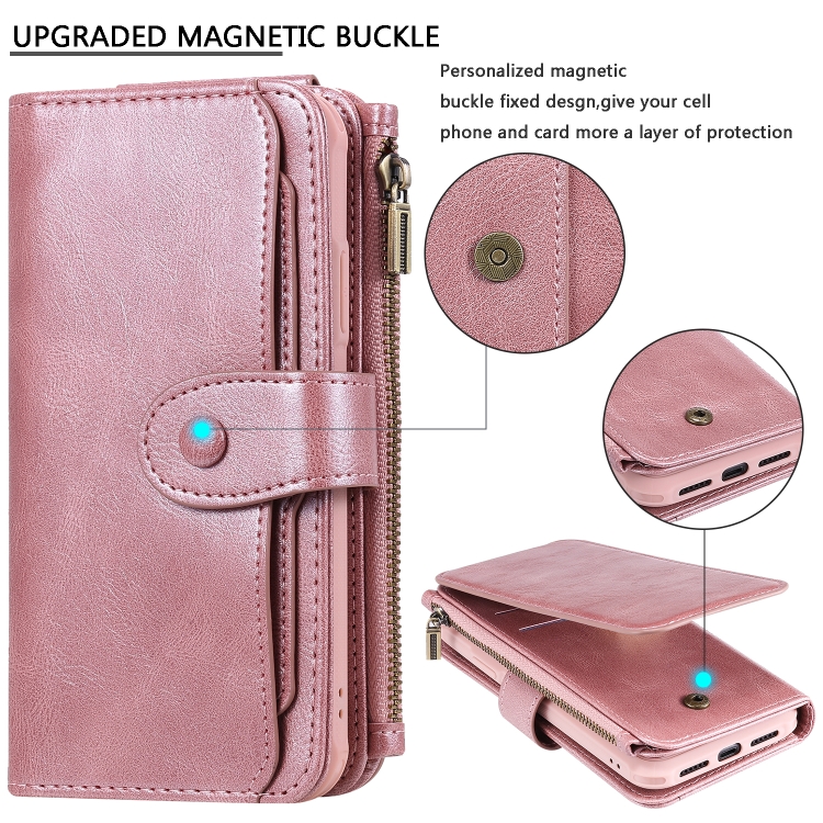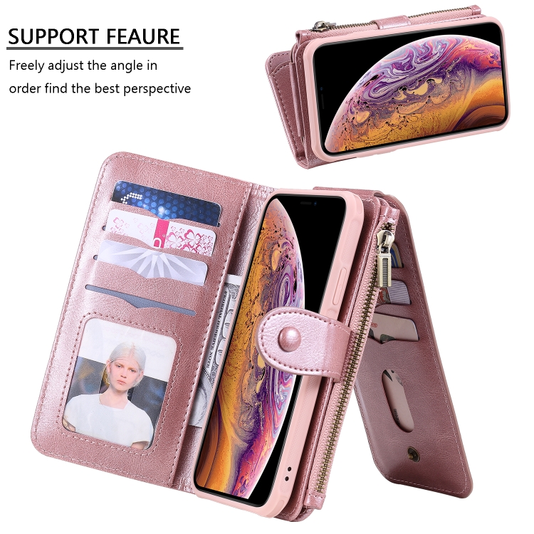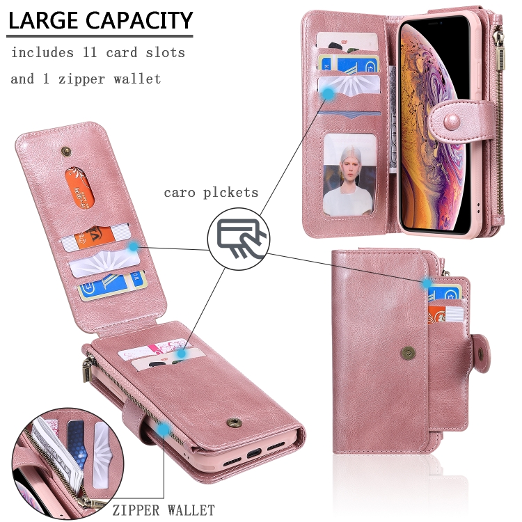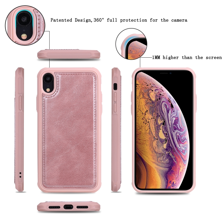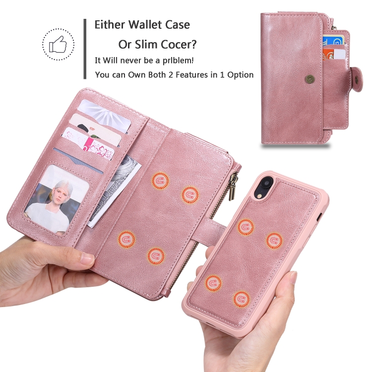 Estuche de Cuero para iPhone Xr con Tapa Horizontal Magnética Desmontable Ranuras para Tarjetas Soporte Billetera Marco de Fotos (Oro Rosa)