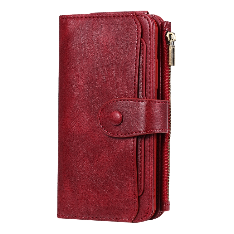 Estuche de Cuero para iPhone Xr con Tapa Horizontal Magnética Desmontable Ranuras para Tarjetas Soporte Billetera Marco de Fotos (Rojo)