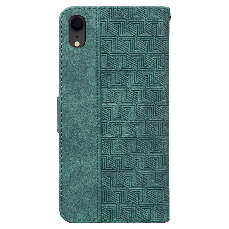Estuche de teléfono para iPhone Xr de cuero en relieve geométrico (Verde)