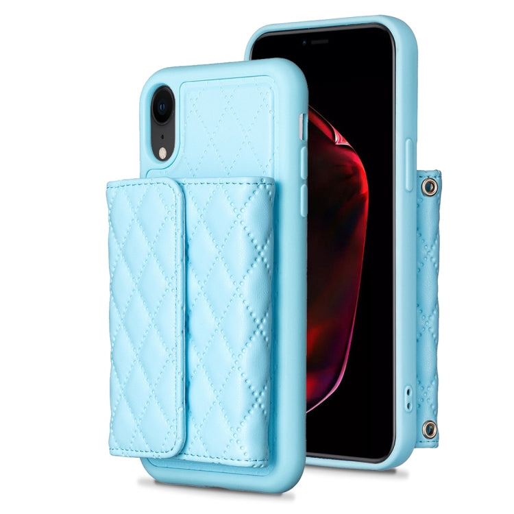 Estuche de Teléfono para iPhone Xr Cuero Rómbico con Billetera Horizontal (Azul)