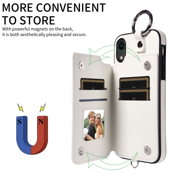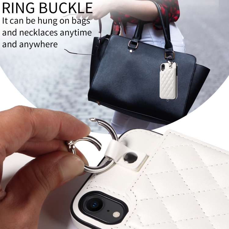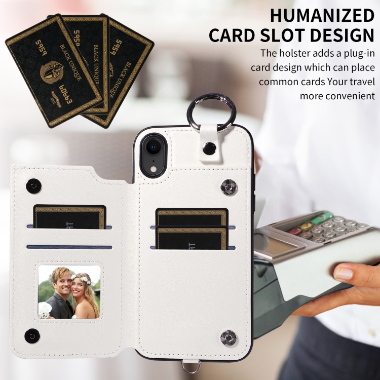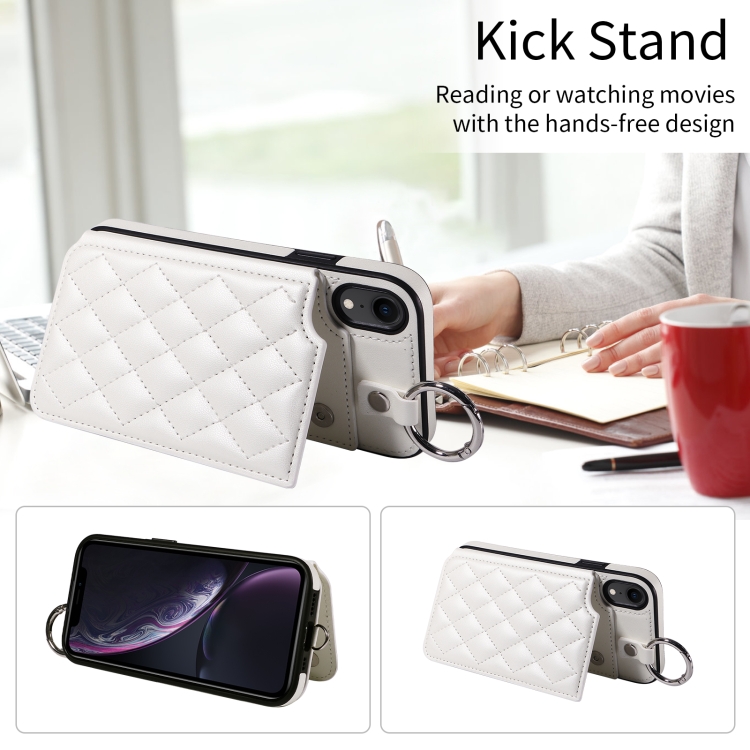 Estuche para Teléfono iPhone Xr con Bolsa para Tarjetas Textura Rómbica y Cordón Corto (Blanco)