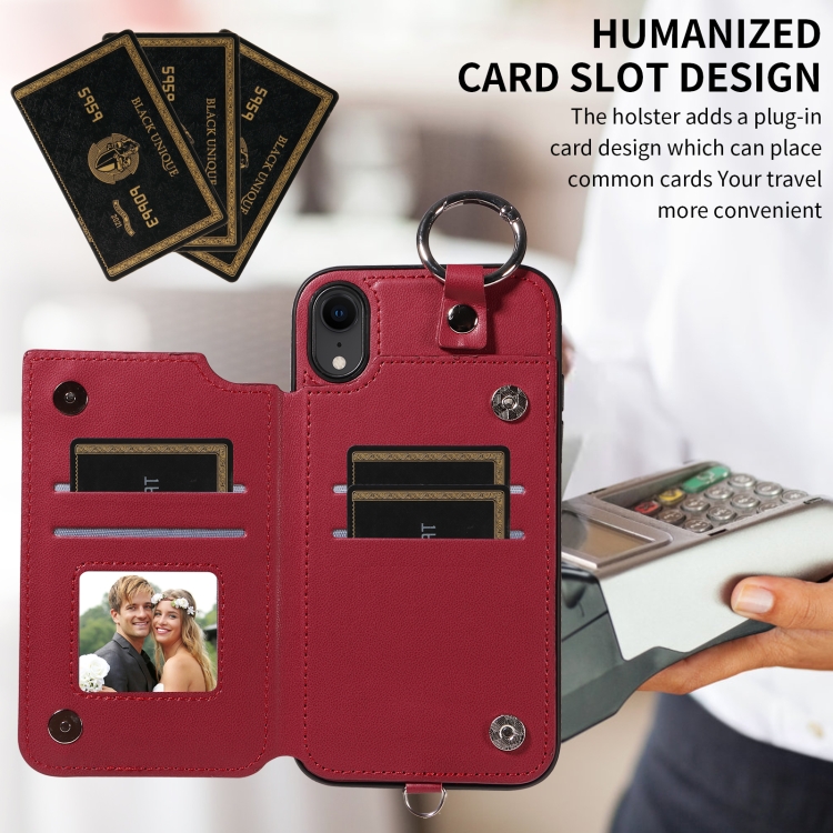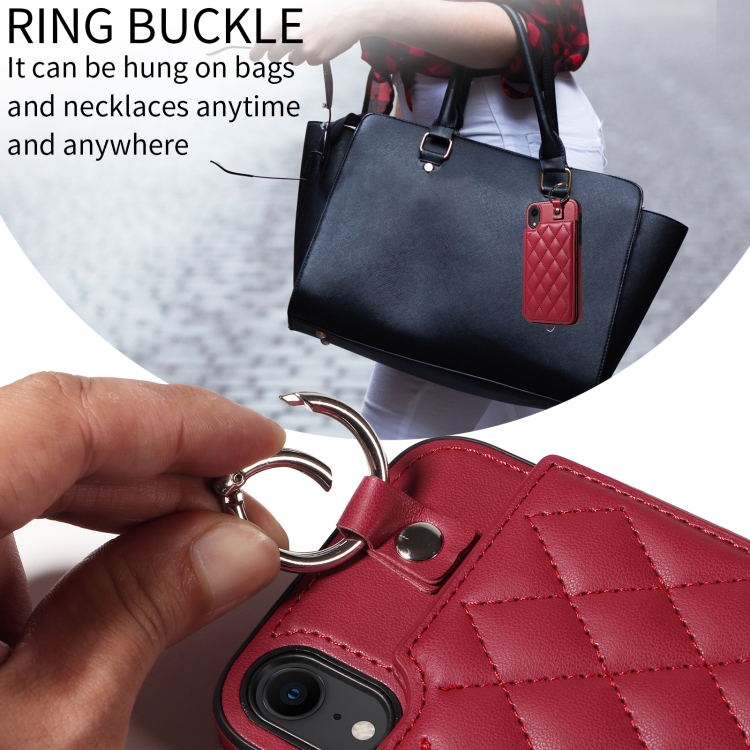 Estuche para Teléfono iPhone Xr Bolsa para Tarjetas Textura Rómbica Cordón Corto (Rojo Vino)