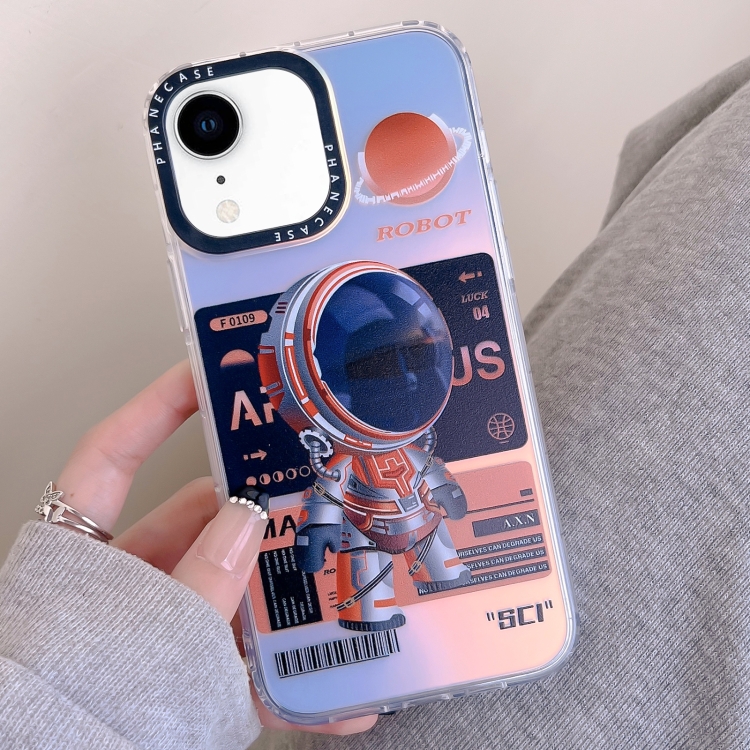 Estuche para teléfono TPU iPhone Xr patrón Astronauta Mecánico (Naranja)