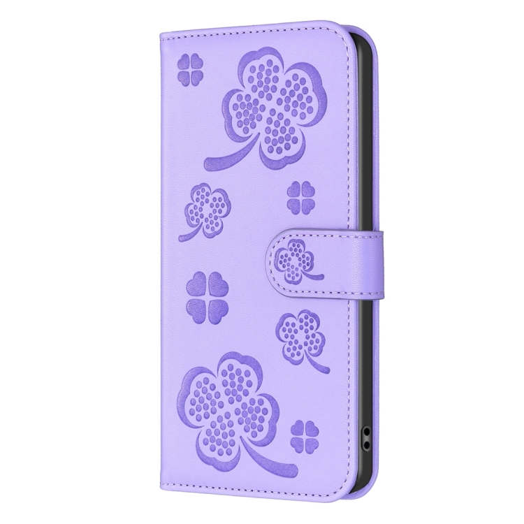 Funda de Cuero para iPhone Xr con Relieve de Cuatro Hojas (Púrpura)