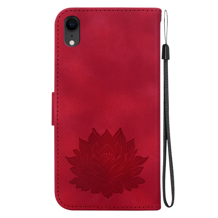 Funda para iPhone Xr Cuero con Relieve de Loto (Rojo)