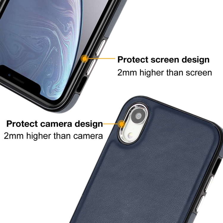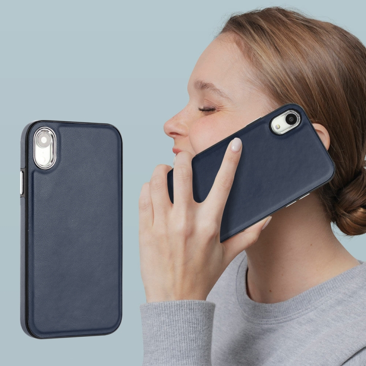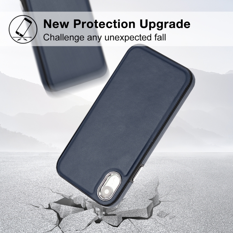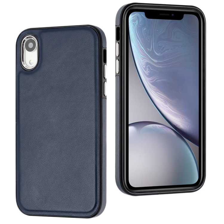 Funda de Teléfono para iPhone Xr Cobertura Total Textura de Cuero (Azul)