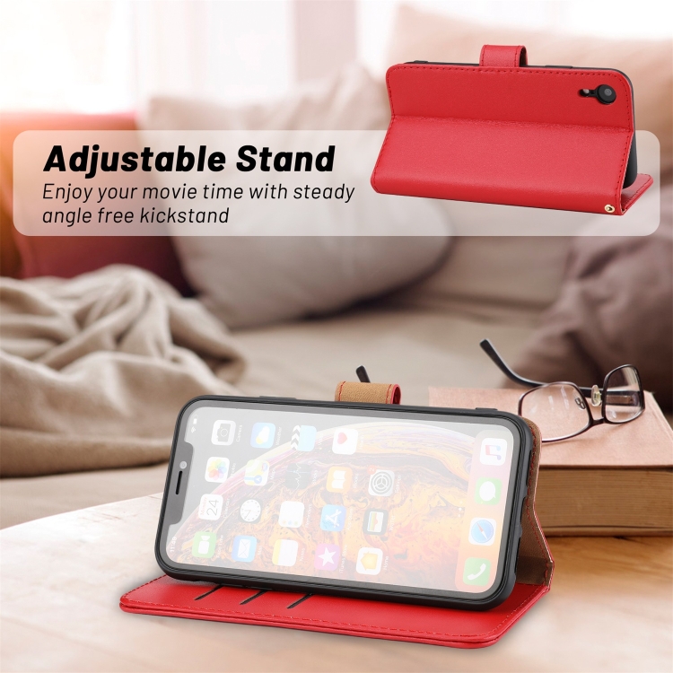 Funda de Teléfono iPhone Xr Cuero de Vaca Tejido Liso (Rojo)