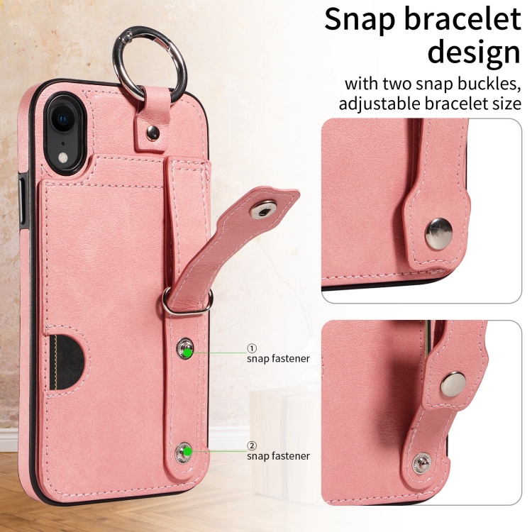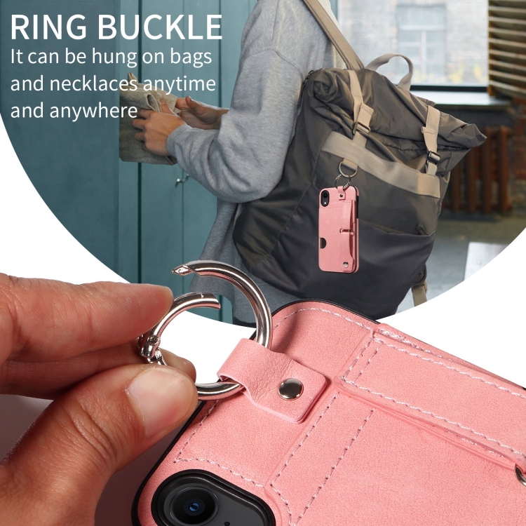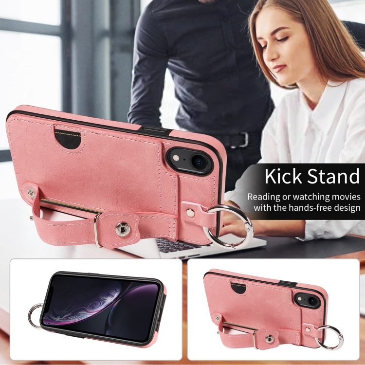 Funda para Teléfono iPhone Xr con Anillo y Ranura para Tarjeta (Rosa)