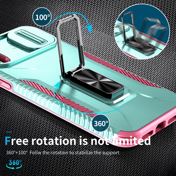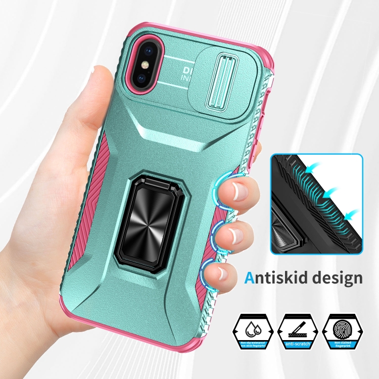 Funda para Teléfono iPhone Xr con Soporte Deslizante Camshield (Gris Verde + Rosa)