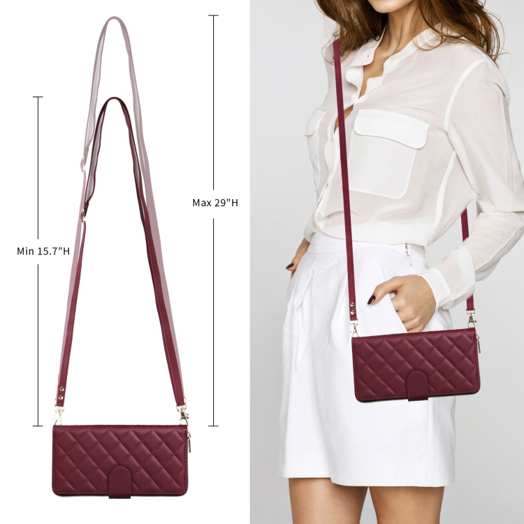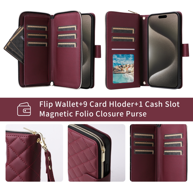 Funda para Teléfono iPhone Xr Cuero Hebilla Torre Cremallera Rómbica Cruzada con Cordón (Rojo Vino)