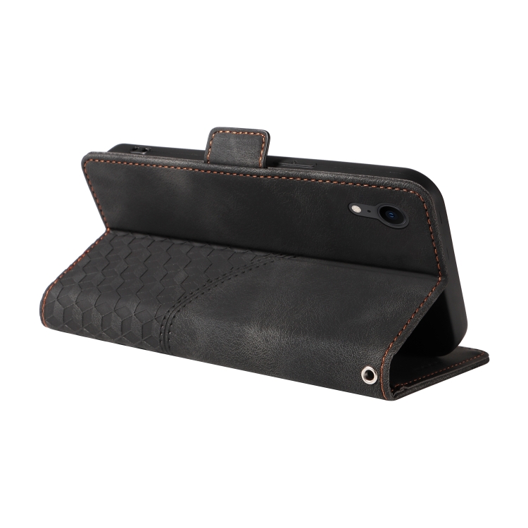 Funda para Teléfono iPhone Xr Cuero Estrellado con Rombos en Relieve (Negro)