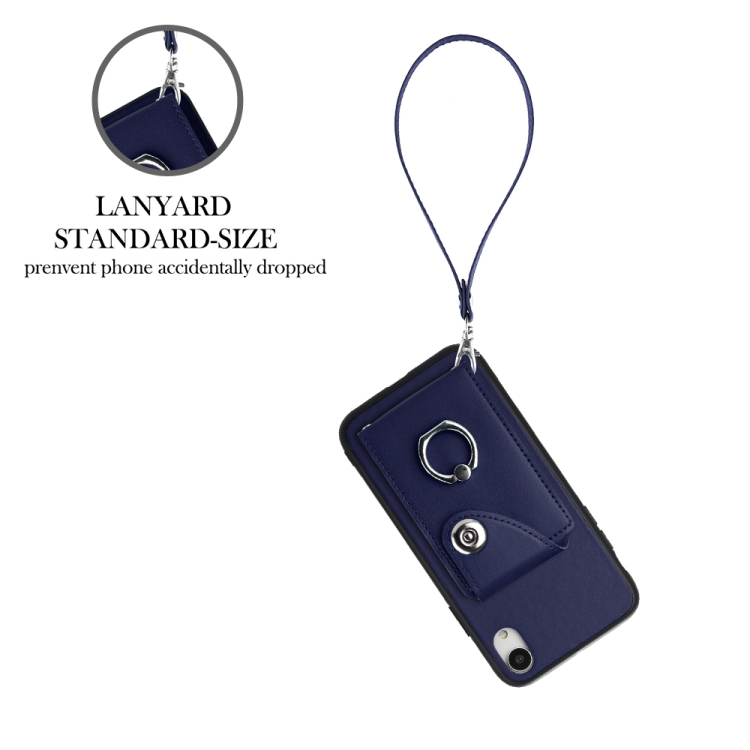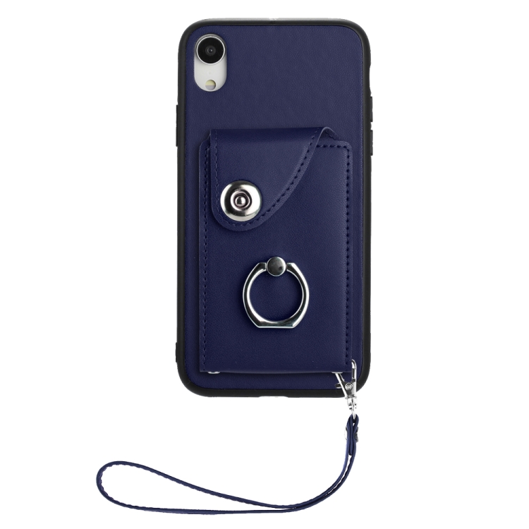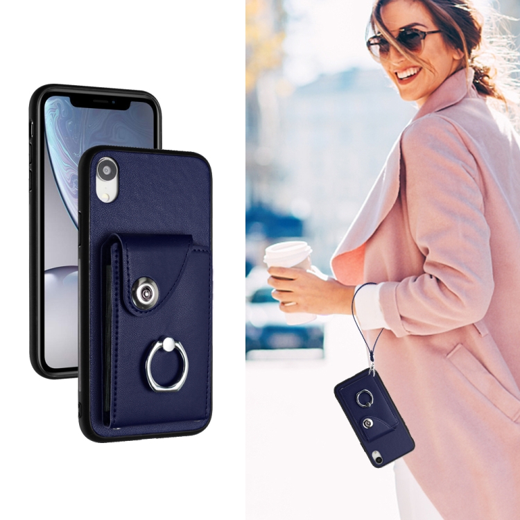 Funda para Teléfono iPhone Xr PU con Soporte para Anillo y Bolsa para Tarjeta con Cordón (Azul)