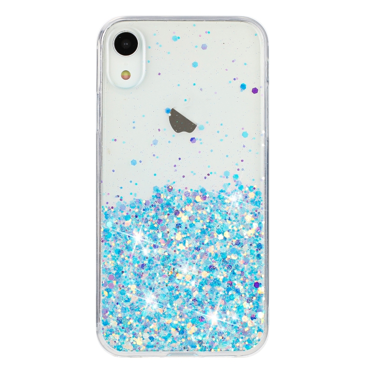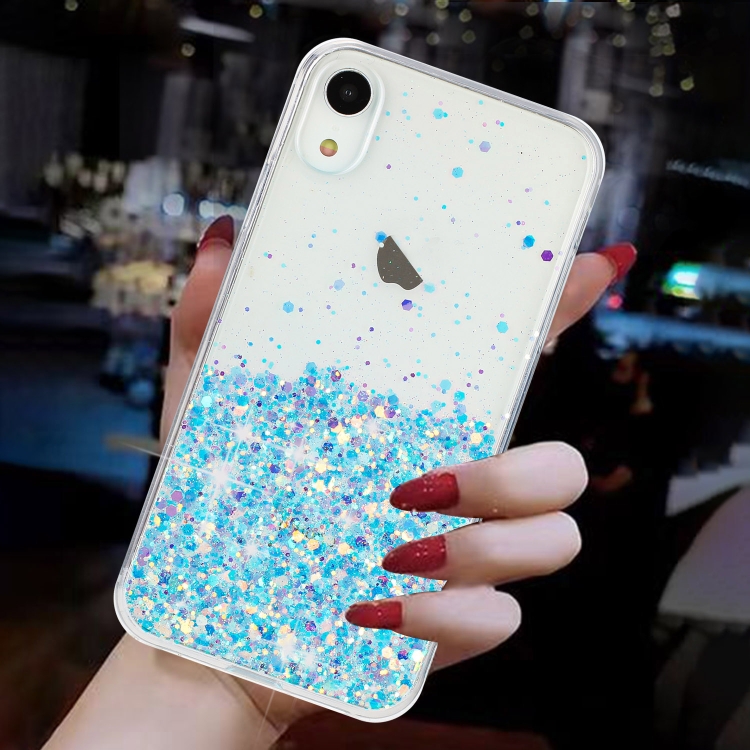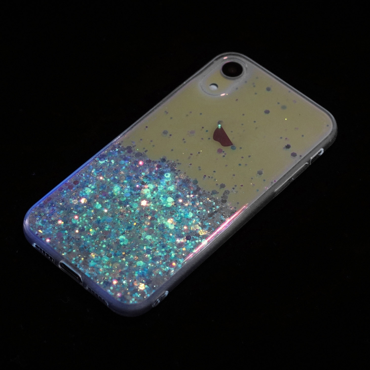 Funda para Teléfono TPU para iPhone Xr con Polvo de Brillo Noctilucente y Marco Transparente (Azul)