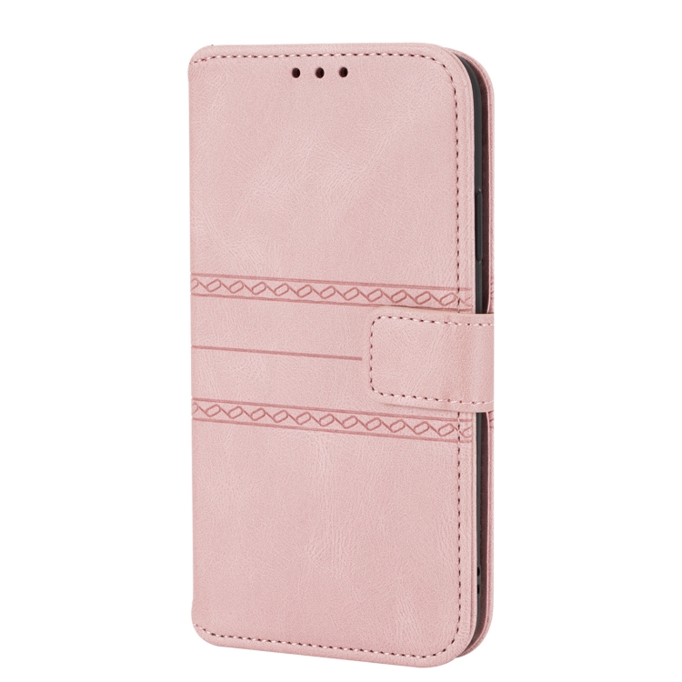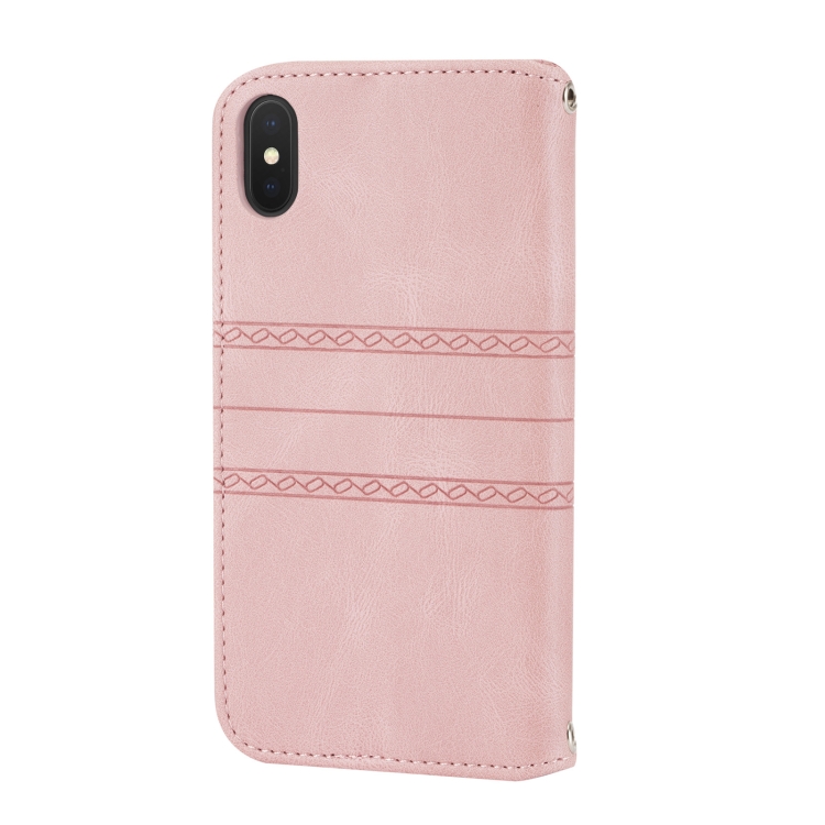 Estuche de Cuero para iPhone Xr Hebilla Magnética a Rayas En Relieve con Soporte Ranura Tarjeta Billetera Marco Fotos Eslinga (Rosa)