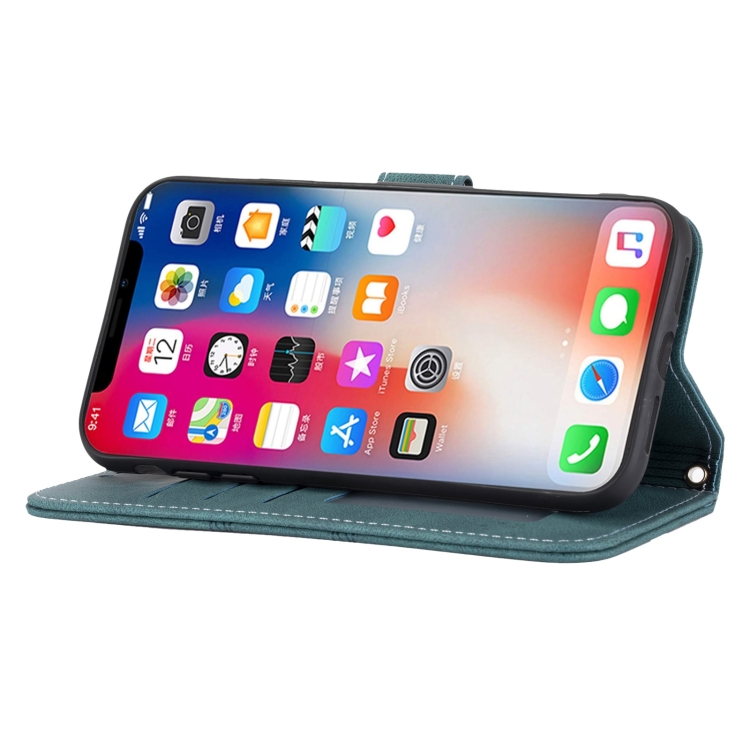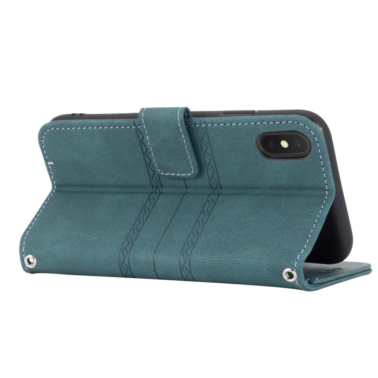 Estuche de Cuero para iPhone Xr Hebilla Magnética a Rayas en Relieve PU + TPU con Tapa Horizontal Soporte Ranura Tarjeta Billetera Marco Fotos Eslinga (Verde)