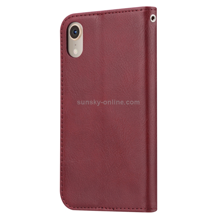 Funda de Cuero para iPhone Xr Knead Skin Texture con Tapa Horizontal, Marco de Fotos, Soporte y Ranuras para Tarjetas (Rojo Vino)