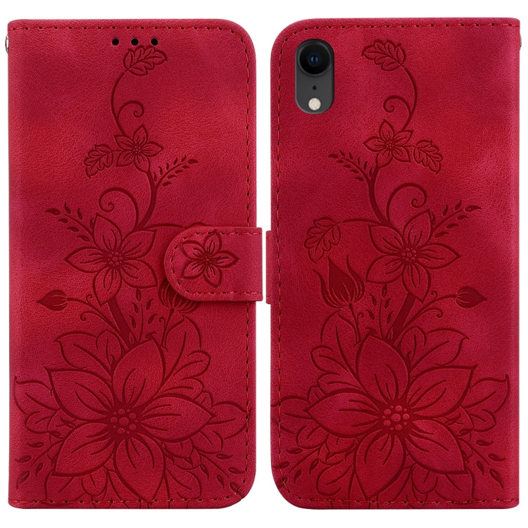 Funda de Teléfono para iPhone Xr Lily en Relieve de Cuero (Rojo)
